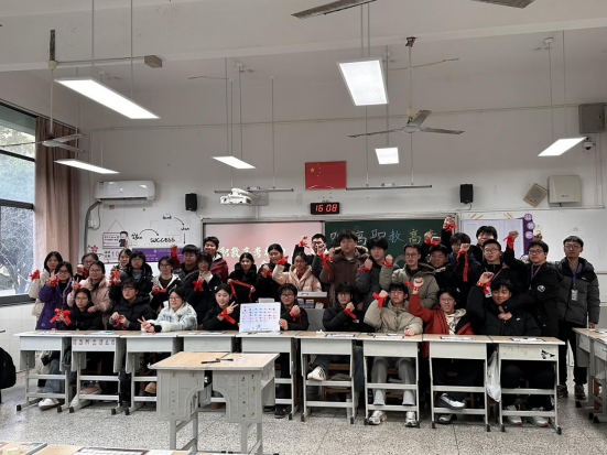 随后,班主任刘志鹏老师送上暖心寄语。他细数同学们从入学到高三的成长点滴,回忆了课堂上的专注、实训室里的汗水,也理解大家冲刺阶段的压力与疲惫。他鼓励同学们,一百天的坚持与付出,终将化作照亮前路的光,希望大家调整心态、紧跟节奏,在老师的陪伴下全力以赴,不负韶华、不负自己。