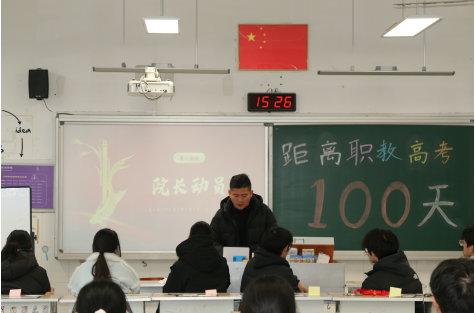 首先,杨院长为同学们作动员讲话。他寄语全体学子,百日时光虽短,却是改写命运的关键一程,希望同学们以职教高考为帆,以知识技能为桨,摒弃浮躁、脚踏实地,珍惜每一分每一秒的冲刺时光;同时叮嘱同学们,学院永远是大家最坚实的后盾,全体教师将全程护航,助力大家圆梦考场。杨院长的讲话掷地有声,点燃了在场学子的拼搏热情。
