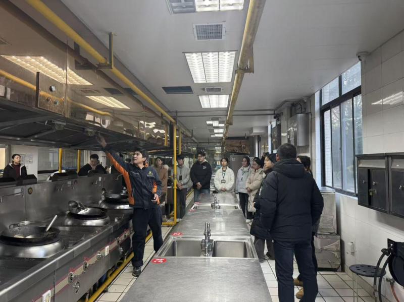 此前,苏州顺康鑫智能装备有限公司技术人员已完成我院烹饪实训室消防喷淋装置核心部件的更换与系统调试,确保设备处于良好运行状态。为让师生真正做到 “会用、敢用”,技术人员结合烹饪实训明火多、油类火灾风险高的特点,为全体参训人员开展了系统培训。培训中,技术人员从消防喷淋设备的工作原理、触发条件、日常检查要点等方面进行了详细讲解,并重点示范了紧急情况下的启用流程、操作规范以及火灾初期的应急处置方法。现场还通过演示与互动答疑,进一步巩固了参训人员的理解与掌握。