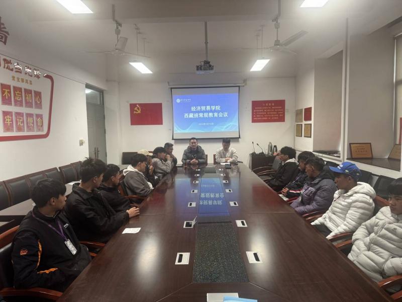 为提升西藏学生纪律意识、规范日常行为,经济贸易学院于3月16日在B1-304会议室召开常规教育会议,本次会议由蒋骏副书记主持,学发处石荣锦处长、西藏班班主任次仁平措、西藏班班主任李志伟及全体西藏班男生共同参加。